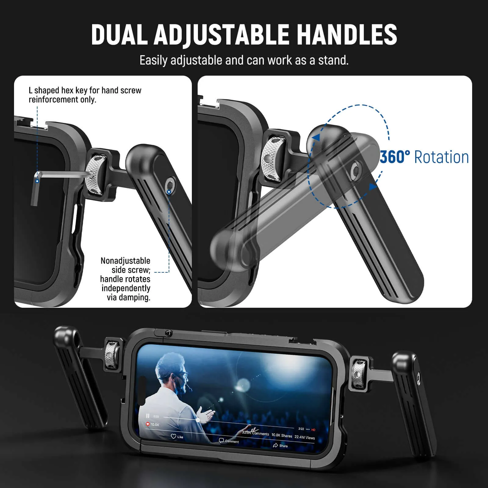 • Strong Metal Construction– Built with solid CNC machined aluminum alloy, the case can resist scratches, bumps, and impacts, making it essential for outdoor vlogging and photography